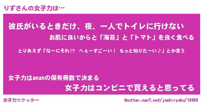 | ヘコむあだ名 | 『りずふぇ~』『牛乳』『りずっちょ』 |