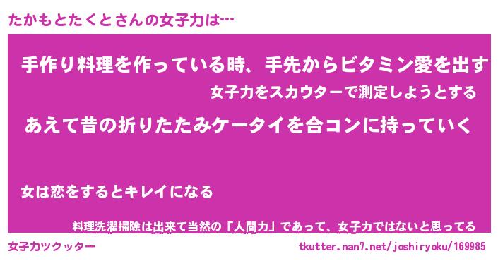 | ヘコむあだ名 | 『たかもー』『つくし』『たかを』 |
