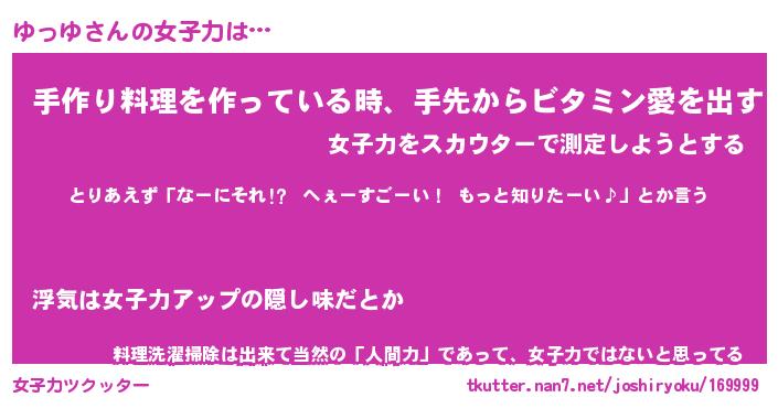 | ファンタジー風あだ名 | 『ユッフェル』『エターナルユッユー』 |
