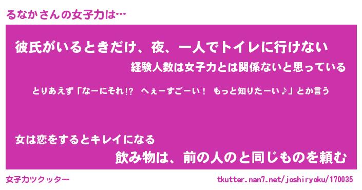 | ヘコむあだ名 | 『るなふぇ~』『豆乳』『るなお』 |