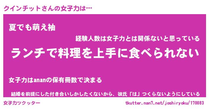 | 恥ずかしいあだ名 | 『プリティークインチット』『クイっちょ』 |