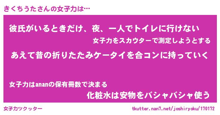 | 女子向けラノベタイトル風あだ名 | 『(仮)きくちうたのやんごとなき事情』 |