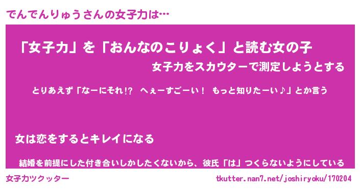 | 女子向けラノベタイトル風あだ名 | 『でんでんりゅう姫と円卓の騎士』 |