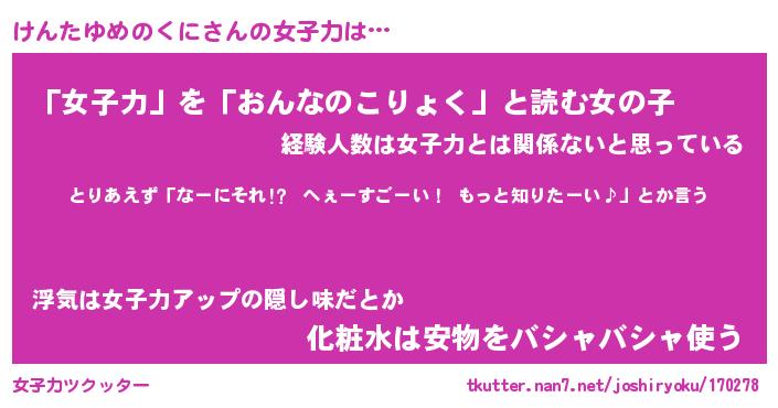 | ヘコむあだ名 | 『けんにー』『レバニラ』『けん太郎』 |