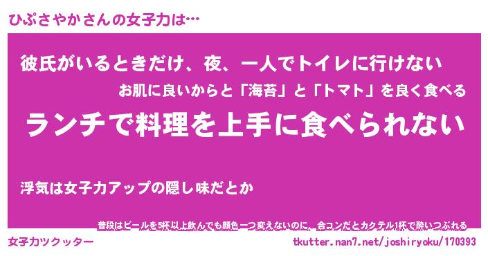 | ヘコむあだ名 | 『ひぷにー』『豆乳』『ひぷっぺ』 |