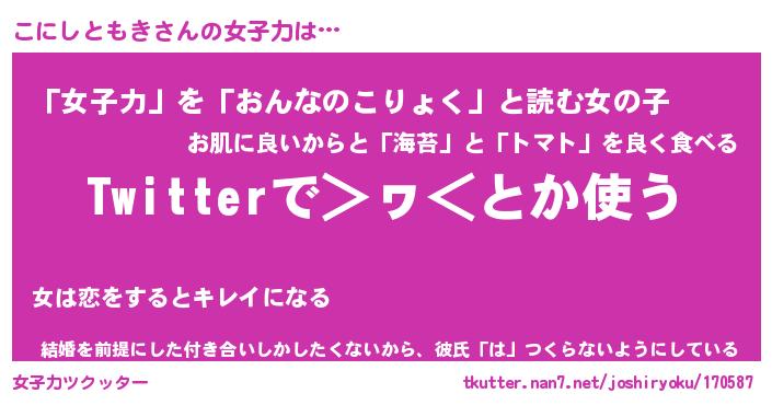 | 女子向けラノベタイトル風あだ名 | 『こにしともき姫と円卓の騎士』 |