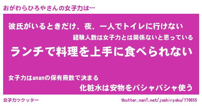 | ヘコむあだ名 | 『おがっふぃ~』『豆乳』『おがっ子』 |