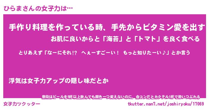 | ヘコむあだ名 | 『ひらもー』『牛乳』『ひら太郎』 |