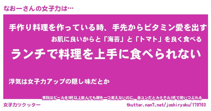 | ヘコむあだ名 | 『なおふぇ~』『つくし』『なおっ子』 |