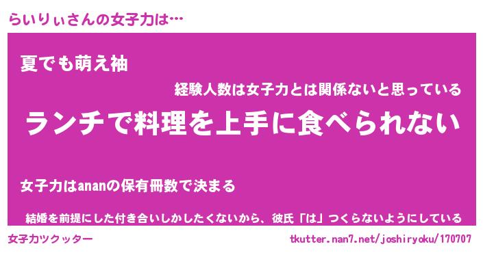 | 意味不明あだ名 | 『ペロリンらいりぃ』『永久保存らいりぃ』 |