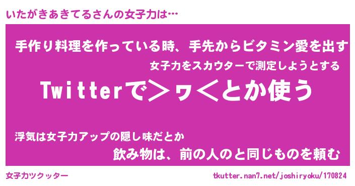 | ヘコむあだ名 | 『いたふぇ~』『つくし』『いたを』 |