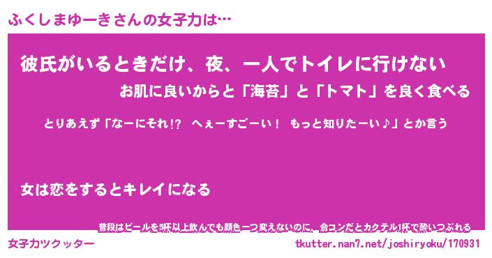 | 恥ずかしいあだ名 | 『プリティーふくしまゆーき』『ふくちん』 |