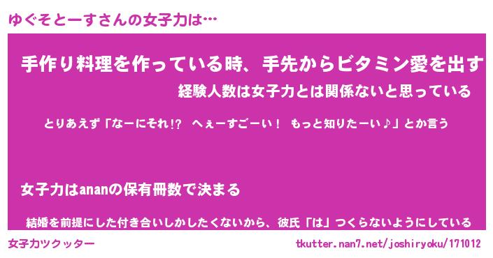 | ヘコむあだ名 | 『ゆぐっふぃ~』『つくし』 |