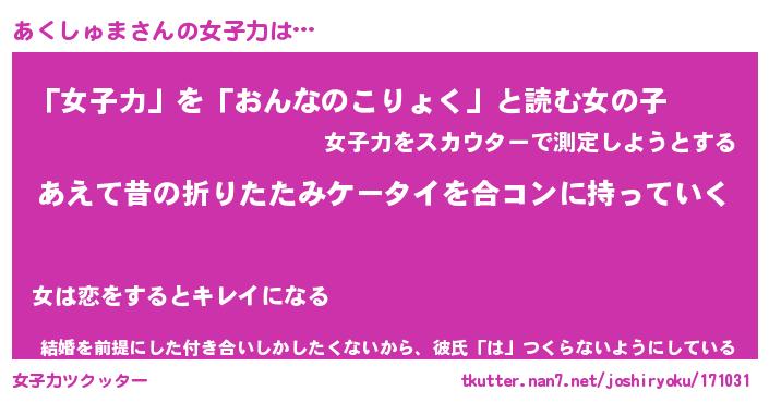 | 胡散臭い通販商品みたいなあだ名 | 『必ず成功するブレスレット…その名も「あくしゅま」』 |