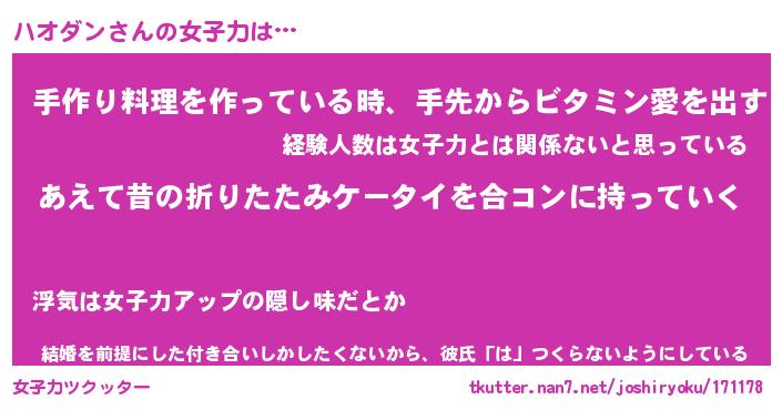 | ヘコむあだ名 | 『ハオにゅー』『つくし』『ハオっ子』 |