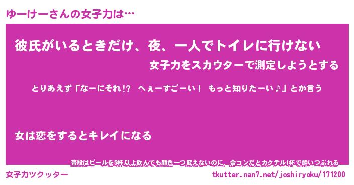 | ヘコむあだ名 | 『ゆーにー』『つくし』『ゆーっ子』 |