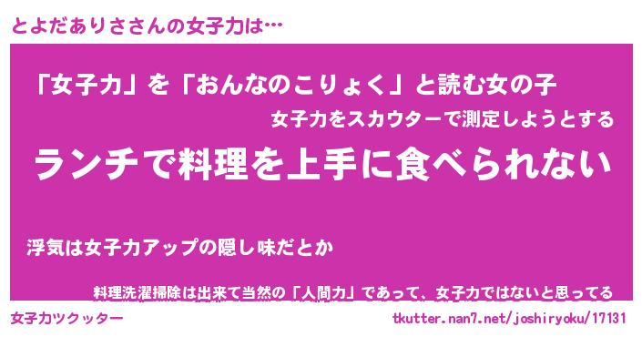 | ヘコむあだ名 | 『とよっふぃ~』『酢こんぶ』 |