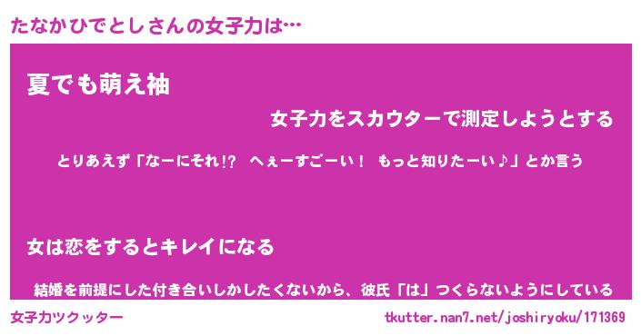 | ヘコむあだ名 | 『たなっふぃ~』『なまこ酢』 |