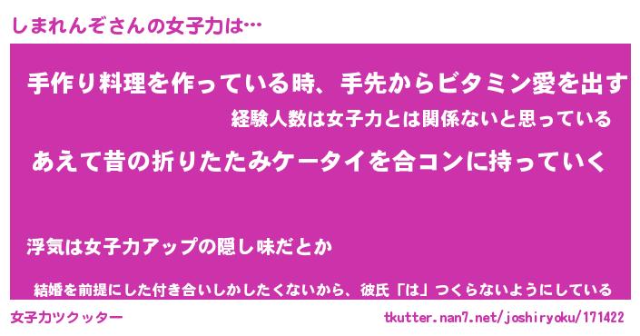 | ヘコむあだ名 | 『しまもー』『つくし』『しまっぺ』 |