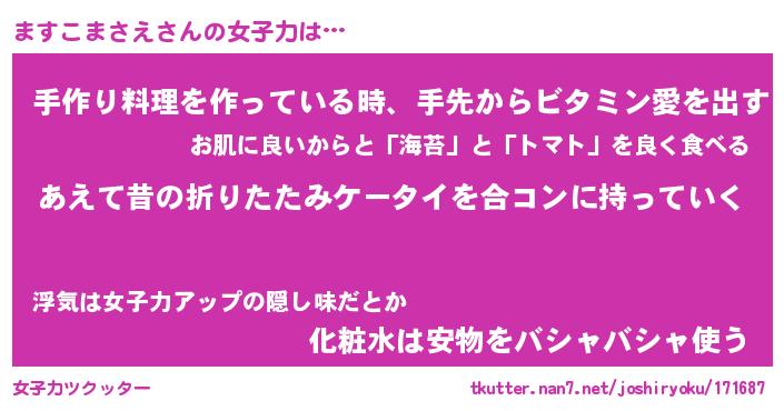 | 恥ずかしいあだ名 | 『プリティーますこまさえ』『ますっちょ』 |