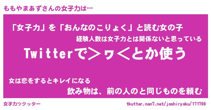 | ヘコむあだ名 | 『ももにゅー』『なまこ酢』『ももを』 |