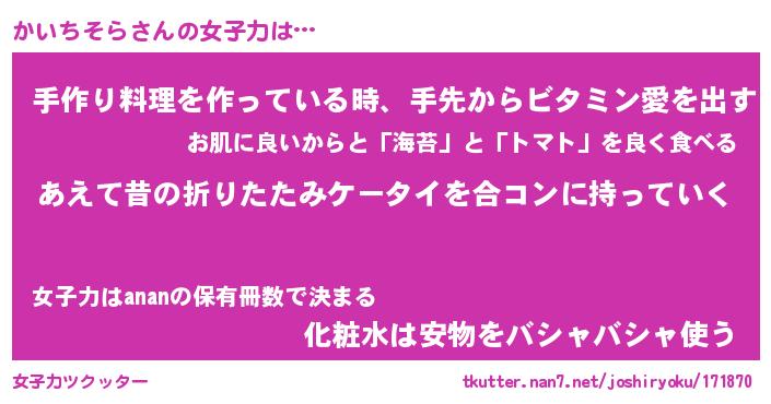 | 胡散臭い通販商品みたいなあだ名 | 『必ず成功するブレスレット…その名も「かいちそら」』 |