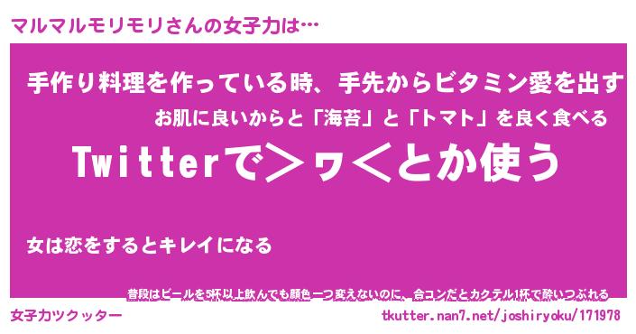 | ヘコむあだ名 | 『マルにゅー』『つくし』『マルを』 |