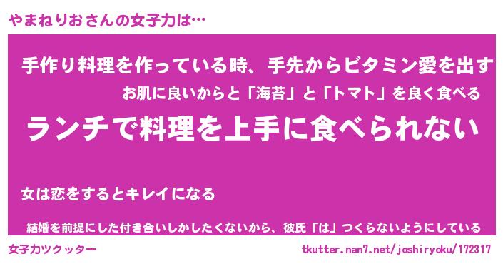 | 料理風あだ名 | 『ネギたっぷりやまねりおの南蛮漬け』 |