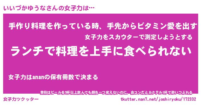 | 恥ずかしいあだ名 | 『プリティーいいづかゆうな』『いいちん』 |