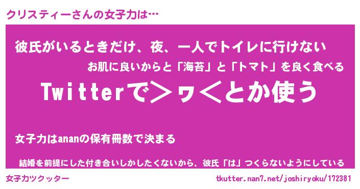 | 恥ずかしいあだ名 | 『プリティークリスティー』『クリっちょ』 |