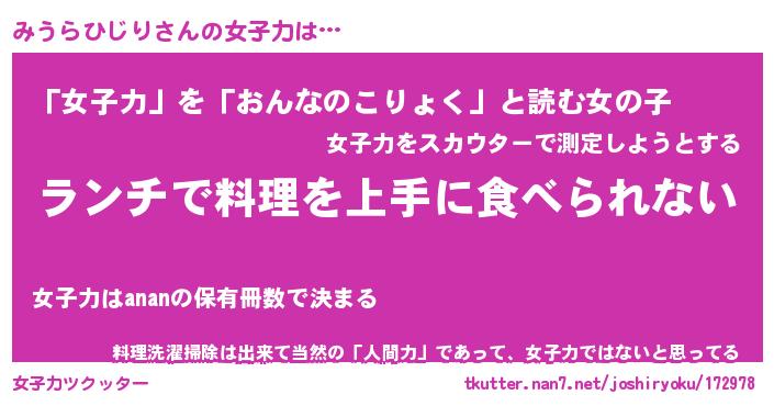| ヘコむあだ名 | 『みうっふぃ~』『レバニラ』 |