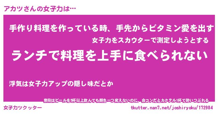 | 肩書あだ名 | 『アカツ御曹司』『アカツ大統領』 |