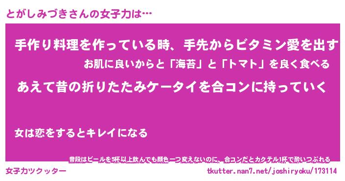 | ヘコむあだ名 | 『とがにー』『酢こんぶ』『とがお』 |