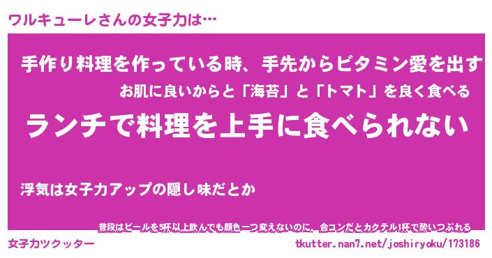 | 料理風あだ名 | 『ネギたっぷりワルキューレの南蛮漬け』 |