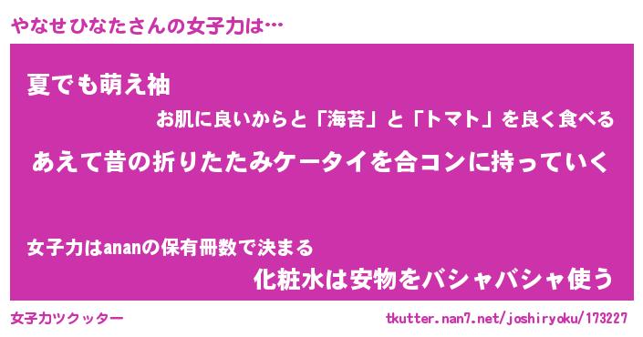 | ヒーロー風カッコイイあだ名 | 『スーパーヤナセヒナタ』『魔戒騎士ヤナ』 |