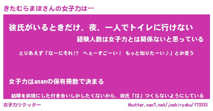 | ヘコむあだ名 | 『きたもー』『豆乳』『きたっちょ』 |