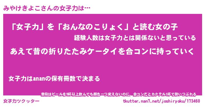 | 胡散臭い通販商品みたいなあだ名 | 『必ず成功する水晶球…その名も「みやけきよこ」』 |