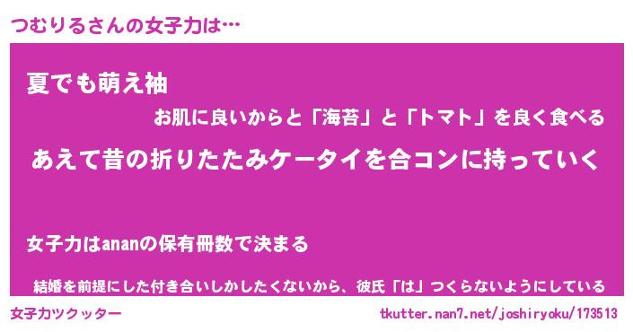 | ポケモン風あだ名 | 『ツムチュウ』『ツムリダネ』 |
