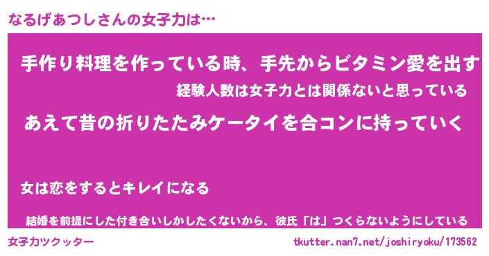 | 男性向けラノベタイトル風あだ名 | 『なるげあつしの憂鬱』 |