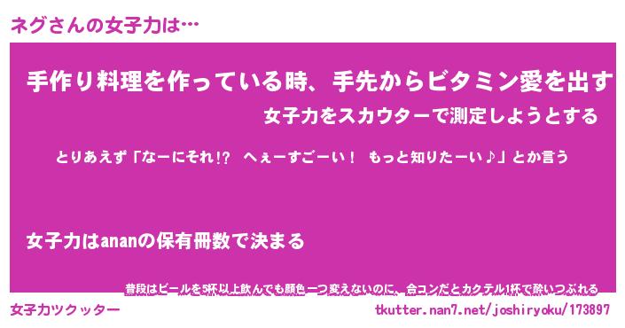 | 恥ずかしいあだ名 | 『プリティーネグ』『ネグっちょ』 |
