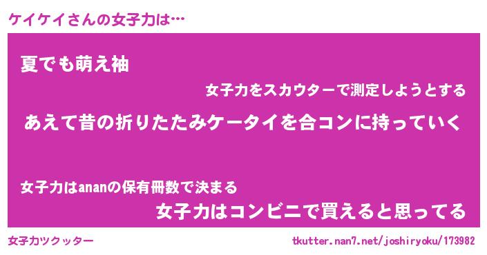| ヘコむあだ名 | 『ケイもー』『酢こんぶ』『ケイっぺ』 |