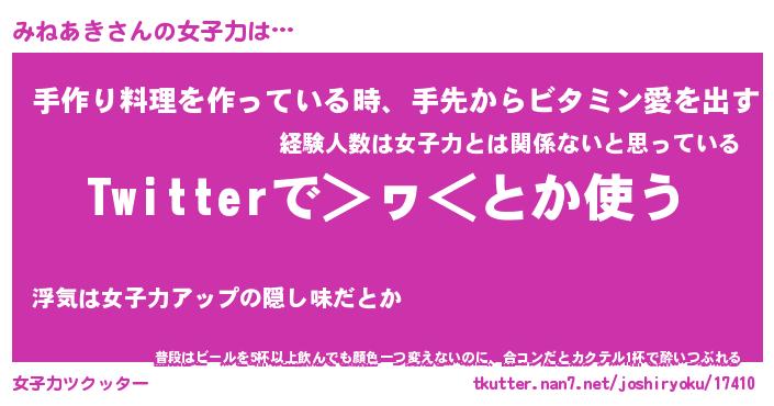 | 恥ずかしいあだ名 | 『プリティーみねあき』『みねっちょ』 |