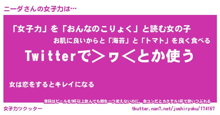 | ヘコむあだ名 | 『ニーもー』『豆乳』『ニーぷりん』 |