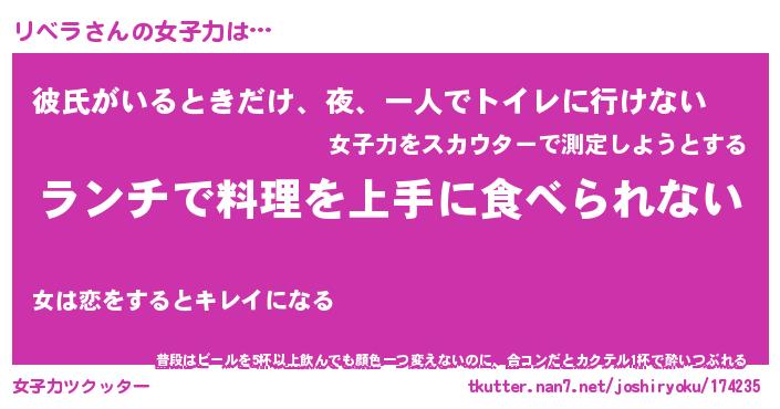 | ヘコむあだ名 | 『リベふぇ~』『豆乳』『リベを』 |