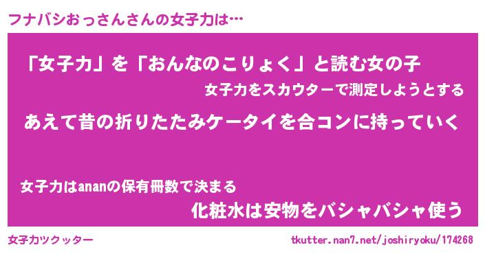 | 男性向けラノベタイトル風あだ名 | 『フナバシおっさんの憂鬱』 |