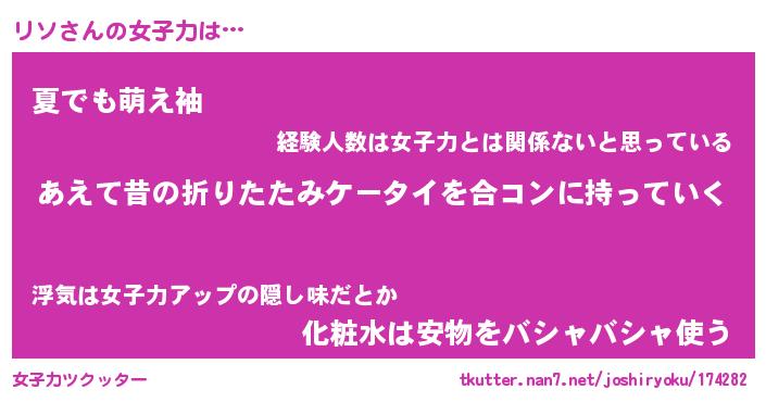 | ヘコむあだ名 | 『リソもー』『なまこ酢』『リソを』 |