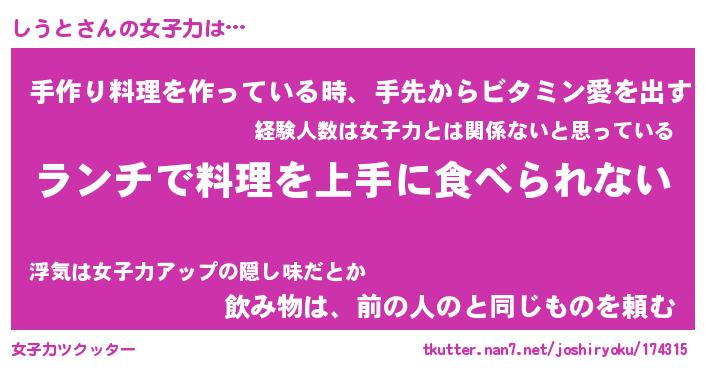 | ヘコむあだ名 | 『しうふぇ~』『つくし』『しうっ子』 |