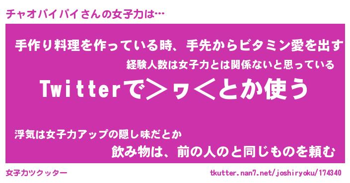 | ツイッター | チャオパイパイさんのツイッターID『masyumaro_man』 |