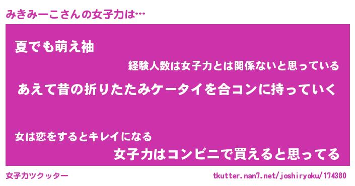 | ヘコむあだ名 | 『みきにー』『牛乳』『みきっぺ』 |
