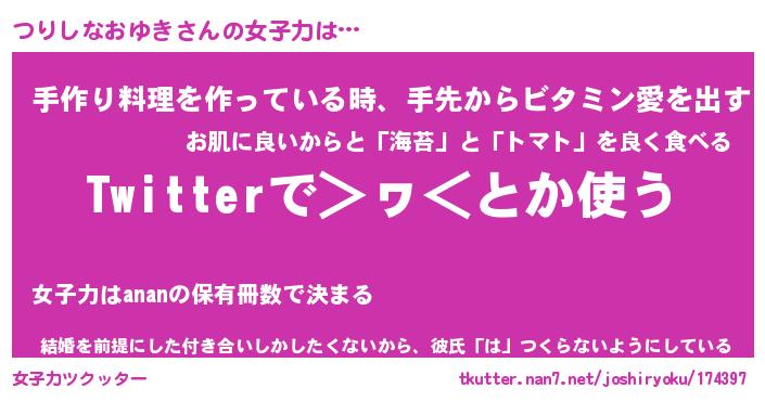 | 恥ずかしいあだ名 | 『プリティーつりしなおゆき』『つりちん』 |